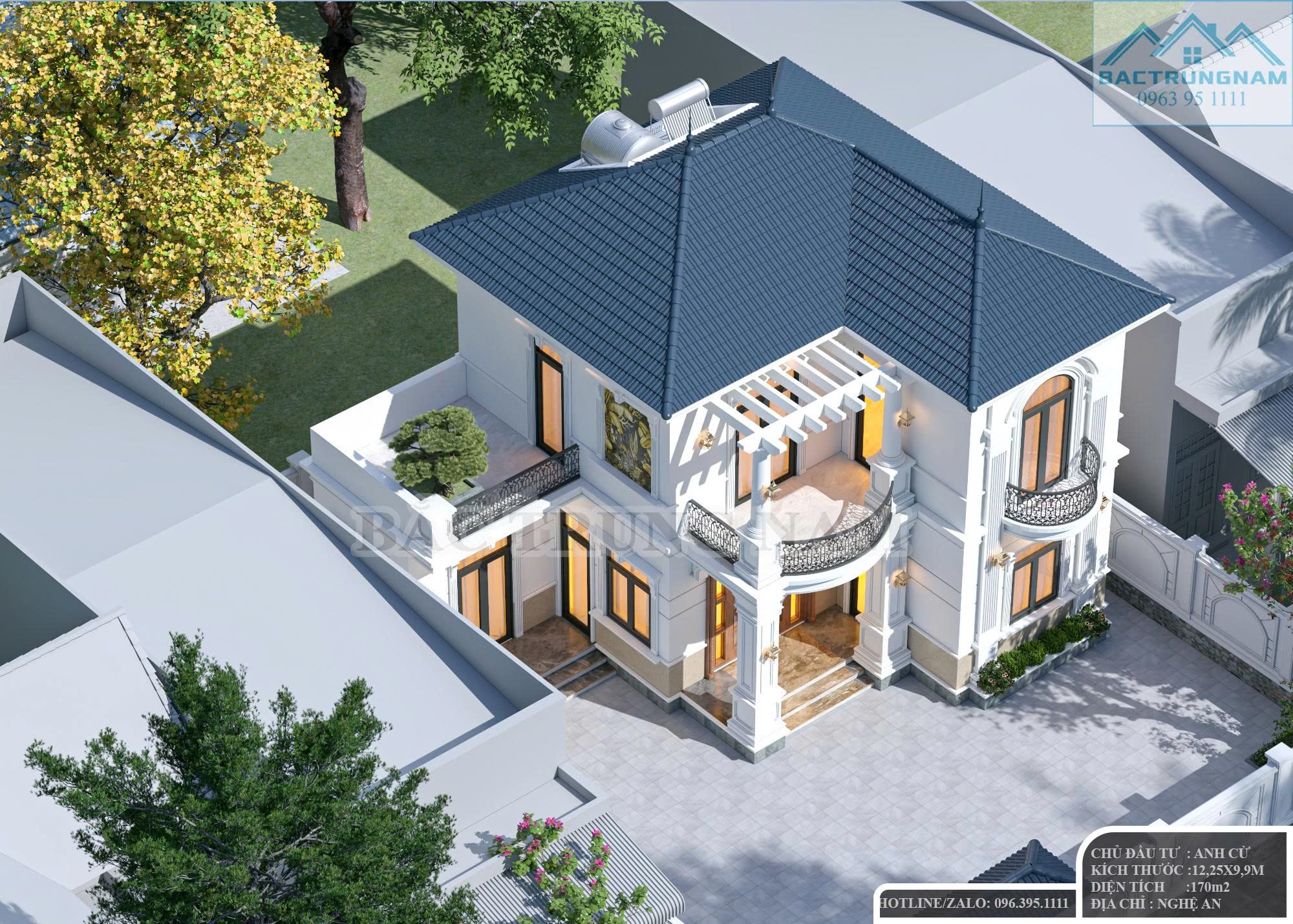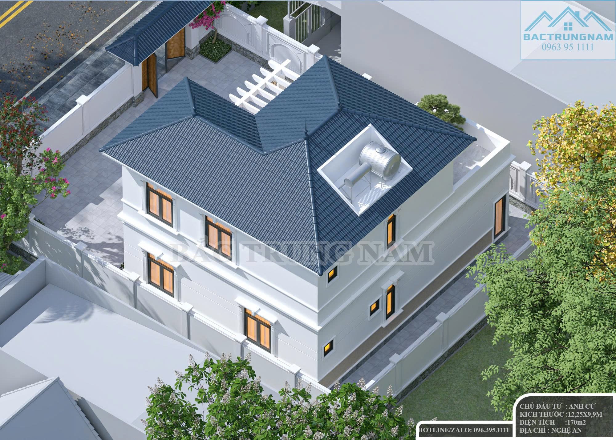 + Kích thước thiết kế: 12.25 x 9.9m