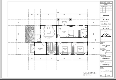 Tầng 2 bao gồm: 3 phòng ngủ, phòng sinh hoạt chung, phòng kho, phòng vệ sinh.