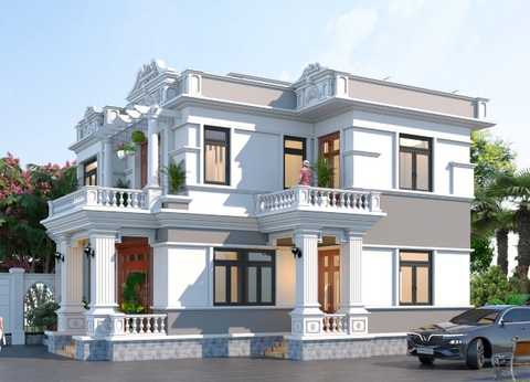 Góc nhìn chính diện của biệt thự tân cổ điển 2 tầng