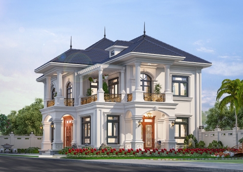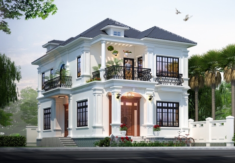 Biệt thự 2 tầng mái Nhật phong cách tân cổ điển