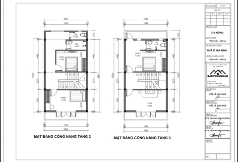 Bố trí mặt bằng tầng 2 và tầng 3 của biệt thự phố 3 tầng