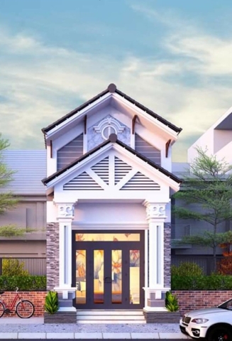 View mặt tiền của nhà gác lửng mái Thái