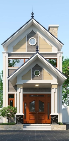 Mặt tiền sang trọng của nhà gác lửng mái Thái